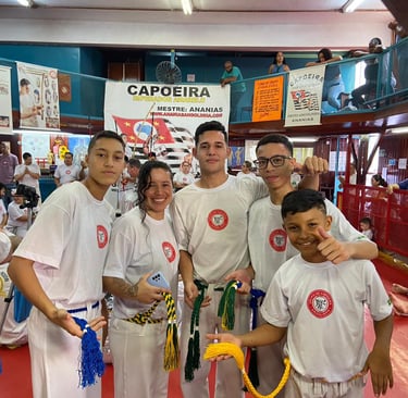 Durante o batizado, os alunos tiveram a oportunidade de vivenciar novos desafios e conquistas, representados pelas graduações que simbolizam o esforço, a disciplina e o comprometimento de cada um com a capoeira. Desde os primeiros cordões até os alunos em estágio de formação, todos demonstraram evolução e respeito à tradição do grupo.